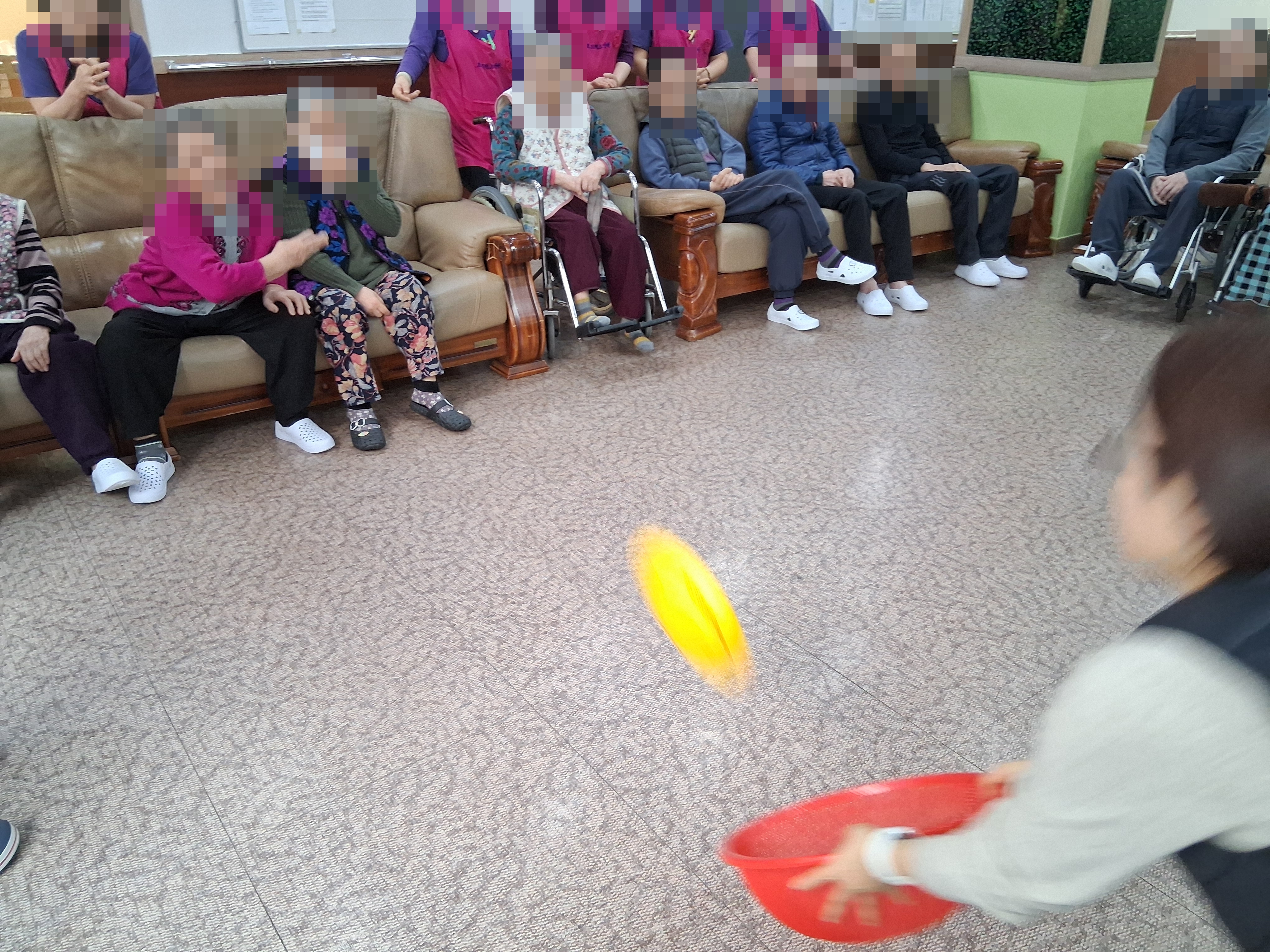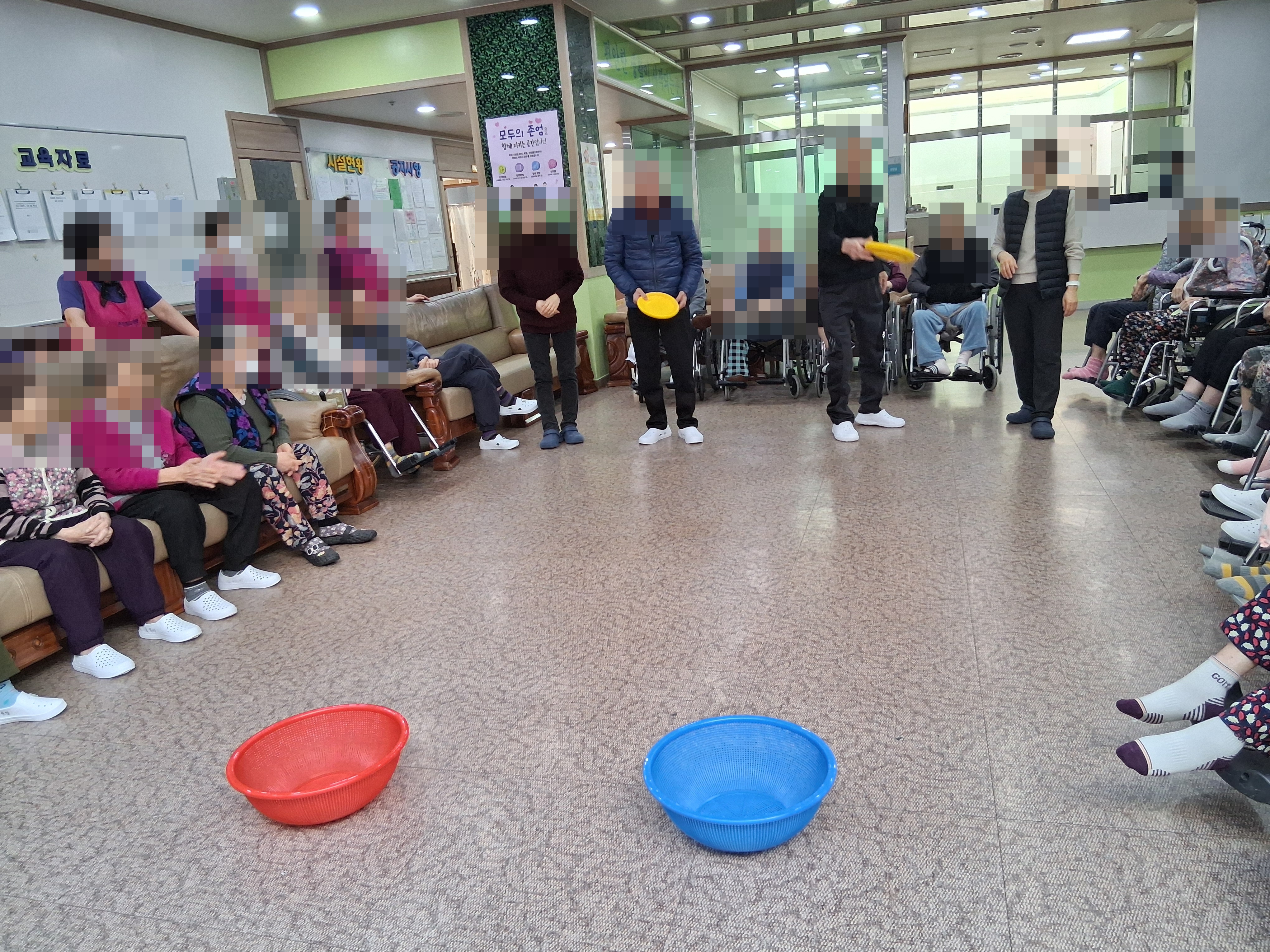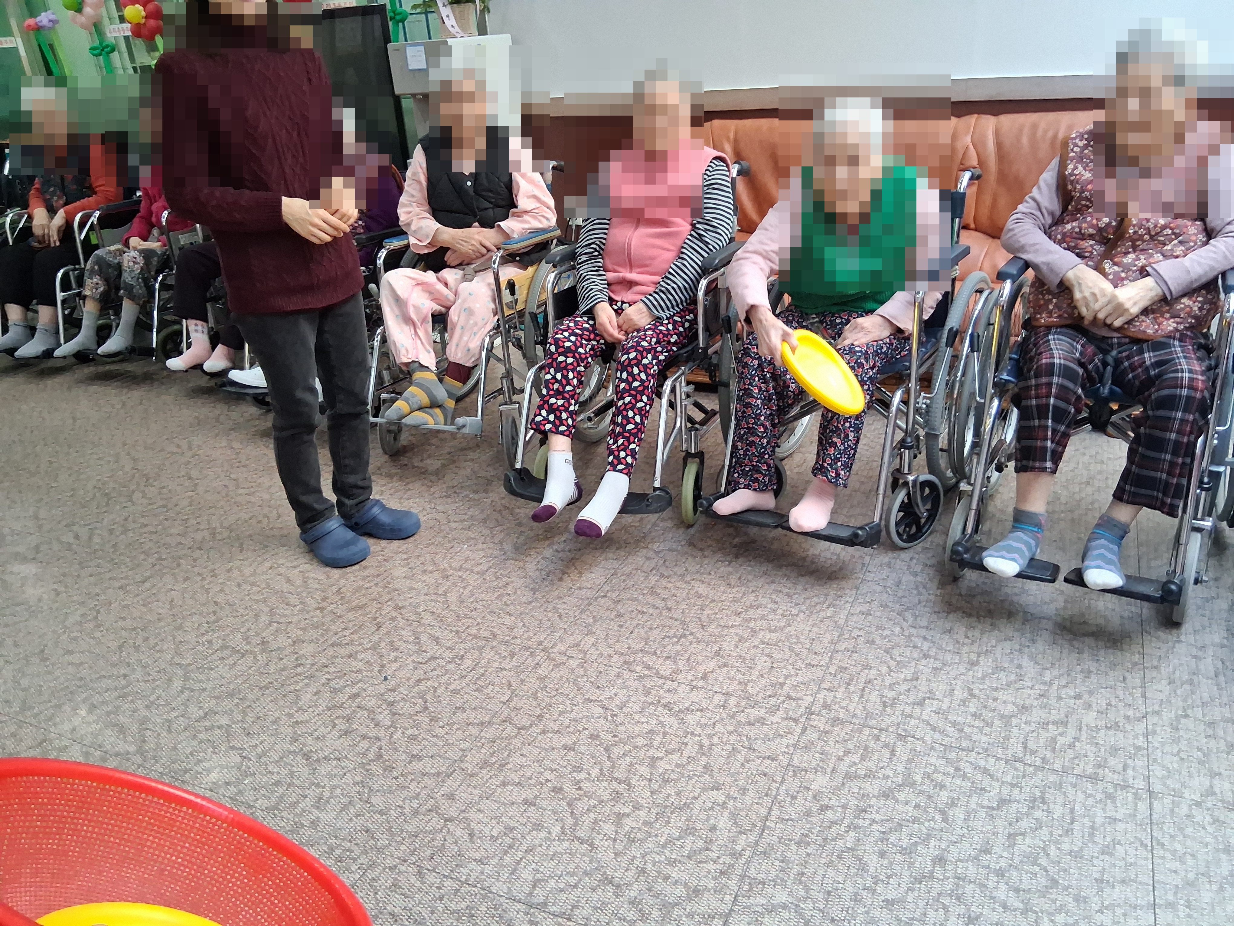 오늘은 어르신들과 함께 원반던지기 프로그램을 진행했어요