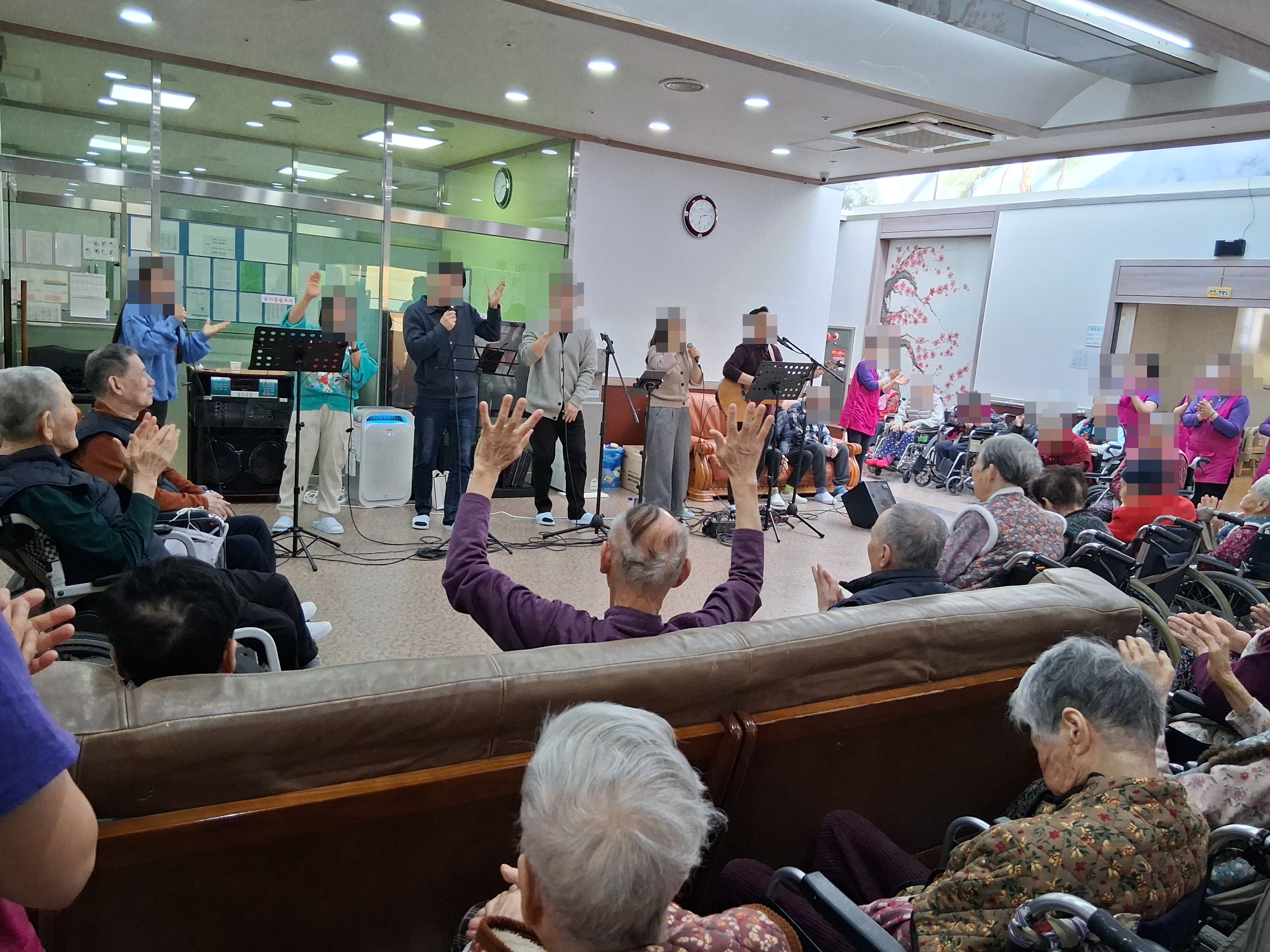 따뜻한 노래가 이어지자 어르신들께서 차분히 감상하시며 박수도 치시고,