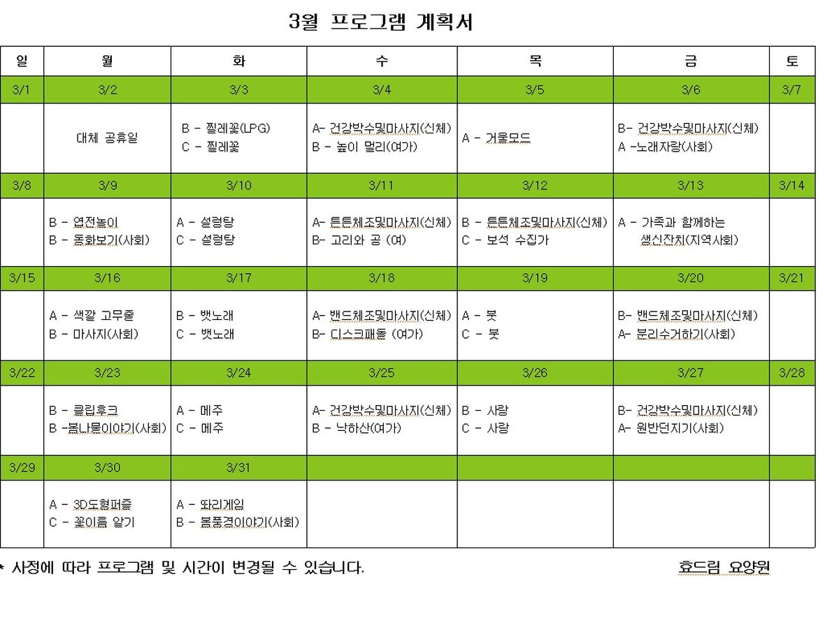 프로그램계획서 26년 03월 프로그램 계획서 작성자 Admin 작성일 2026-03-04 10:57 조회 43 좋아요 0 싫어요 0 인쇄 « 26년 02월 프로그램 계획서 26년 04월 프로그램 계획서 » 목록보기 답글쓰기 Powered by KBoard
